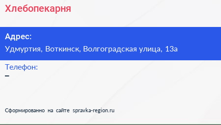 Хлебопекарня по адресу Удмуртия, Воткинск, Волгоградская улица, 13а в дальнейшем Организация, размещена в следующих категориях: