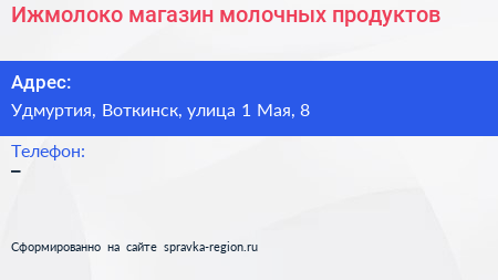 Ижмолоко, магазин молочных продуктов по адресу Удмуртия, Воткинск, улица 1 Мая, 8 в дальнейшем Организация, размещена в следующих категориях: