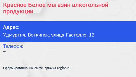 Красное & Белое, магазин алкогольной продукции по адресу Удмуртия, Воткинск, улица Гастелло, 12 в дальнейшем Организация, размещена в следующих категориях: