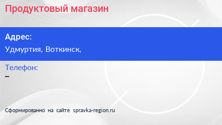 Продуктовый магазин по адресу Удмуртия, Воткинск, в дальнейшем Организация, размещена в следующих категориях: