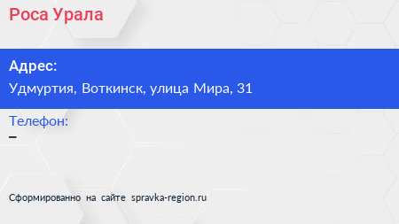 Роса Урала по адресу Удмуртия, Воткинск, улица Мира, 31 в дальнейшем Организация, размещена в следующих категориях: