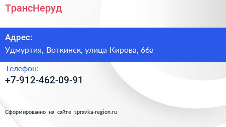 ТрансНеруд по адресу Удмуртия, Воткинск, улица Кирова, 66а в дальнейшем Организация, размещена в следующих категориях: