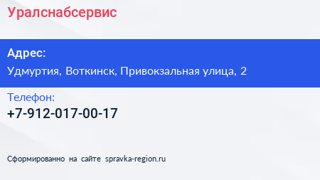 Уралснабсервис по адресу Удмуртия, Воткинск, Привокзальная улица, 2 в дальнейшем Организация, размещена в следующих категориях:
