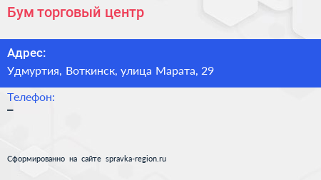Бум, торговый центр по адресу Удмуртия, Воткинск, улица Марата, 29 в дальнейшем Организация, размещена в следующих категориях: