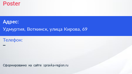 Poster по адресу Удмуртия, Воткинск, улица Кирова, 69 в дальнейшем Организация, размещена в следующих категориях:
