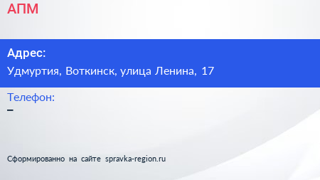 АПМ по адресу Удмуртия, Воткинск, улица Ленина, 17 в дальнейшем Организация, размещена в следующих категориях: