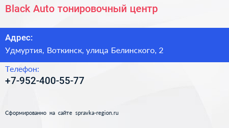 Black Auto, тонировочный центр по адресу Удмуртия, Воткинск, улица Белинского, 2 в дальнейшем Организация, размещена в следующих категориях: