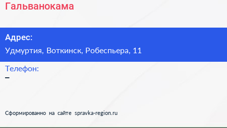 Гальванокама по адресу Удмуртия, Воткинск, Робеспьера, 11 в дальнейшем Организация, размещена в следующих категориях: