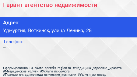 Гарант, агентство недвижимости по адресу Удмуртия, Воткинск, улица Ленина, 28 в дальнейшем Организация, размещена в следующих категориях:
