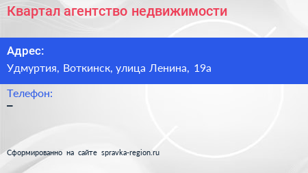 Квартал, агентство недвижимости по адресу Удмуртия, Воткинск, улица Ленина, 19а в дальнейшем Организация, размещена в следующих категориях: