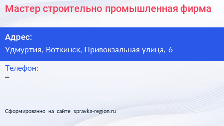 Мастер, строительно-промышленная фирма по адресу Удмуртия, Воткинск, Привокзальная улица, 6 в дальнейшем Организация, размещена в следующих категориях: