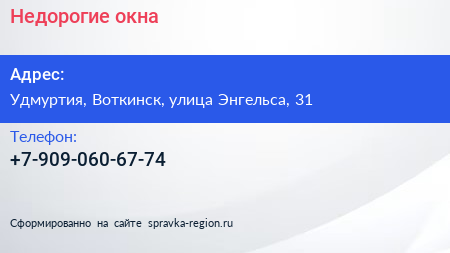 Недорогие окна по адресу Удмуртия, Воткинск, улица Энгельса, 31 в дальнейшем Организация, размещена в следующих категориях: