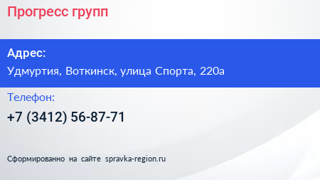 Прогресс групп по адресу Удмуртия, Воткинск, улица Спорта, 220а в дальнейшем Организация, размещена в следующих категориях: