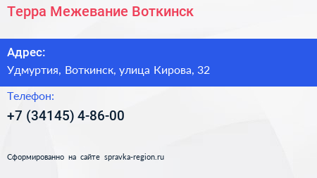 Терра Межевание Воткинск по адресу Удмуртия, Воткинск, улица Кирова, 32 в дальнейшем Организация, размещена в следующих категориях: