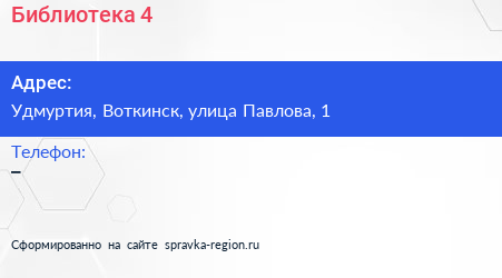 Библиотека №4 по адресу Удмуртия, Воткинск, улица Павлова, 1 в дальнейшем Организация, размещена в следующих категориях:
