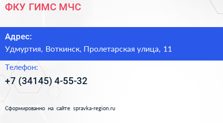 ФКУ ГИМС МЧС по адресу Удмуртия, Воткинск, Пролетарская улица, 11 в дальнейшем Организация, размещена в следующих категориях: