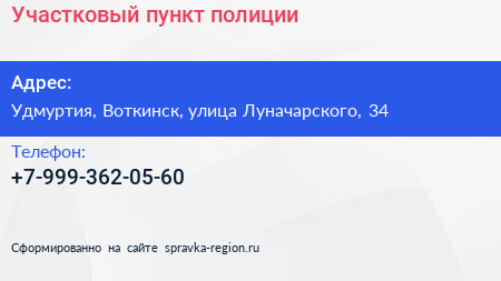 Участковый пункт полиции по адресу Удмуртия, Воткинск, улица Луначарского, 34 в дальнейшем Организация, размещена в следующих категориях: