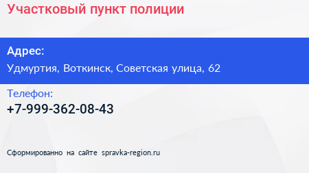 Участковый пункт полиции по адресу Удмуртия, Воткинск, Советская улица, 62 в дальнейшем Организация, размещена в следующих категориях:
