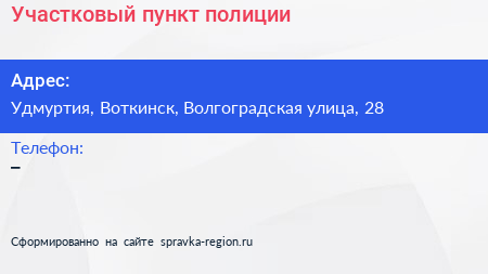Участковый пункт полиции по адресу Удмуртия, Воткинск, Волгоградская улица, 28 в дальнейшем Организация, размещена в следующих категориях: