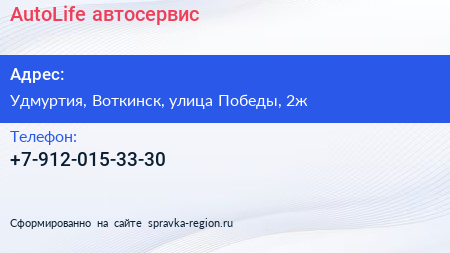 AutoLife, автосервис по адресу Удмуртия, Воткинск, улица Победы, 2ж в дальнейшем Организация, размещена в следующих категориях: