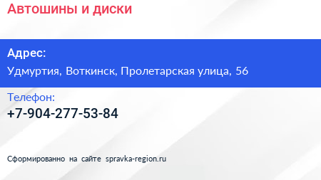Автошины и диски по адресу Удмуртия, Воткинск, Пролетарская улица, 56 в дальнейшем Организация, размещена в следующих категориях: