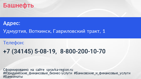 Башнефть по адресу Удмуртия, Воткинск, Гавриловский тракт, 1 в дальнейшем Организация, размещена в следующих категориях:
