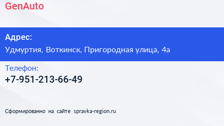GenAuto по адресу Удмуртия, Воткинск, Пригородная улица, 4а в дальнейшем Организация, размещена в следующих категориях: