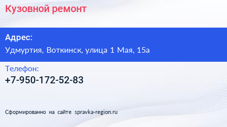 Кузовной ремонт по адресу Удмуртия, Воткинск, улица 1 Мая, 15а в дальнейшем Организация, размещена в следующих категориях: