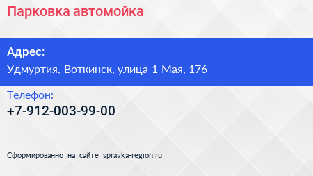 Парковка, автомойка по адресу Удмуртия, Воткинск, улица 1 Мая, 176 в дальнейшем Организация, размещена в следующих категориях: