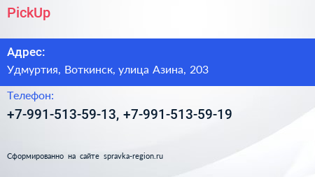 PickUp по адресу Удмуртия, Воткинск, улица Азина, 203 в дальнейшем Организация, размещена в следующих категориях: