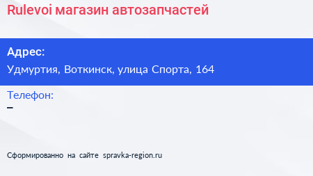 Rulevoi, магазин автозапчастей по адресу Удмуртия, Воткинск, улица Спорта, 164 в дальнейшем Организация, размещена в следующих категориях: