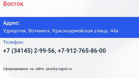 Восток по адресу Удмуртия, Воткинск, Красноармейская улица, 44а в дальнейшем Организация, размещена в следующих категориях: