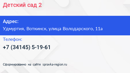 Детский сад №2 по адресу Удмуртия, Воткинск, улица Володарского, 11а в дальнейшем Организация, размещена в следующих категориях:
