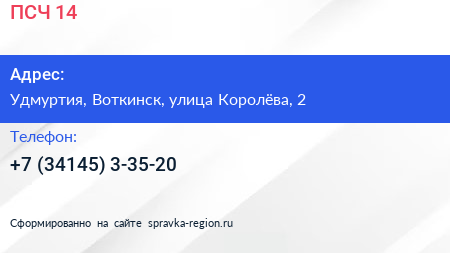 ПСЧ №14 по адресу Удмуртия, Воткинск, улица Королёва, 2 в дальнейшем Организация, размещена в следующих категориях: