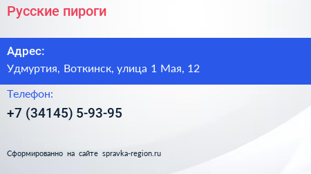Русские пироги по адресу Удмуртия, Воткинск, улица 1 Мая, 12 в дальнейшем Организация, размещена в следующих категориях:
