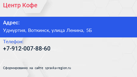 Центр Кофе по адресу Удмуртия, Воткинск, улица Ленина, 5Б в дальнейшем Организация, размещена в следующих категориях:
