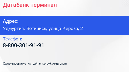 Датабанк, терминал по адресу Удмуртия, Воткинск, улица Кирова, 2 в дальнейшем Организация, размещена в следующих категориях: