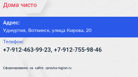 Дома чисто по адресу Удмуртия, Воткинск, улица Кирова, 20 в дальнейшем Организация, размещена в следующих категориях: