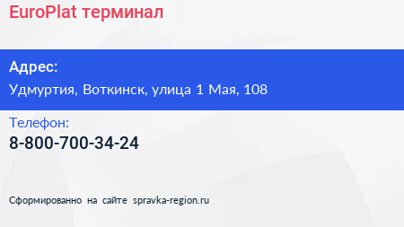 EuroPlat, терминал по адресу Удмуртия, Воткинск, улица 1 Мая, 108 в дальнейшем Организация, размещена в следующих категориях: