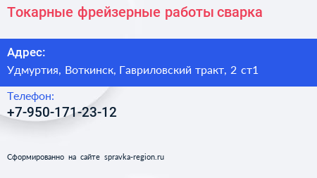 Токарные, фрейзерные работы, сварка по адресу Удмуртия, Воткинск, Гавриловский тракт, 2 ст1 в дальнейшем Организация, размещена в следующих категориях: