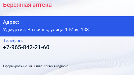 Бережная аптека по адресу Удмуртия, Воткинск, улица 1 Мая, 133 в дальнейшем Организация, размещена в следующих категориях: