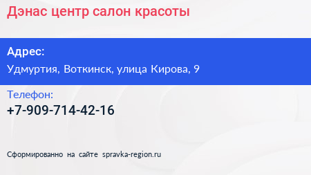 Дэнас-центр, салон красоты по адресу Удмуртия, Воткинск, улица Кирова, 9 в дальнейшем Организация, размещена в следующих категориях: