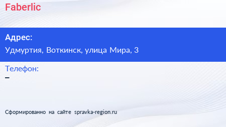 Faberlic по адресу Удмуртия, Воткинск, улица Мира, 3 в дальнейшем Организация, размещена в следующих категориях: