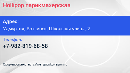 Hollipop, парикмахерская по адресу Удмуртия, Воткинск, Школьная улица, 2 в дальнейшем Организация, размещена в следующих категориях: