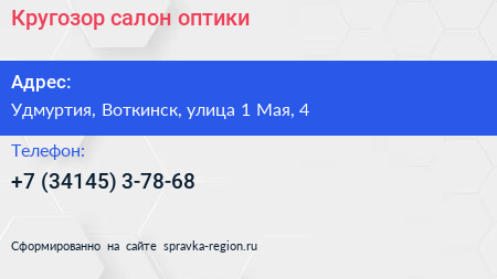 Кругозор, салон оптики по адресу Удмуртия, Воткинск, улица 1 Мая, 4 в дальнейшем Организация, размещена в следующих категориях: