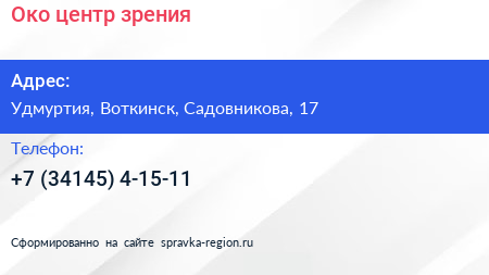 Око, центр зрения по адресу Удмуртия, Воткинск, Садовникова, 17 в дальнейшем Организация, размещена в следующих категориях: