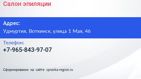 Салон эпиляции по адресу Удмуртия, Воткинск, улица 1 Мая, 46 в дальнейшем Организация, размещена в следующих категориях: