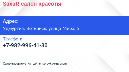 SaxaR, салон красоты по адресу Удмуртия, Воткинск, улица Мира, 5 в дальнейшем Организация, размещена в следующих категориях: