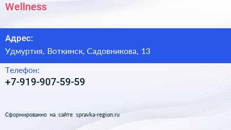 Wellness по адресу Удмуртия, Воткинск, Садовникова, 13 в дальнейшем Организация, размещена в следующих категориях: