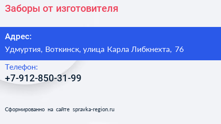 Заборы от изготовителя по адресу Удмуртия, Воткинск, улица Карла Либкнехта, 76 в дальнейшем Организация, размещена в следующих категориях: